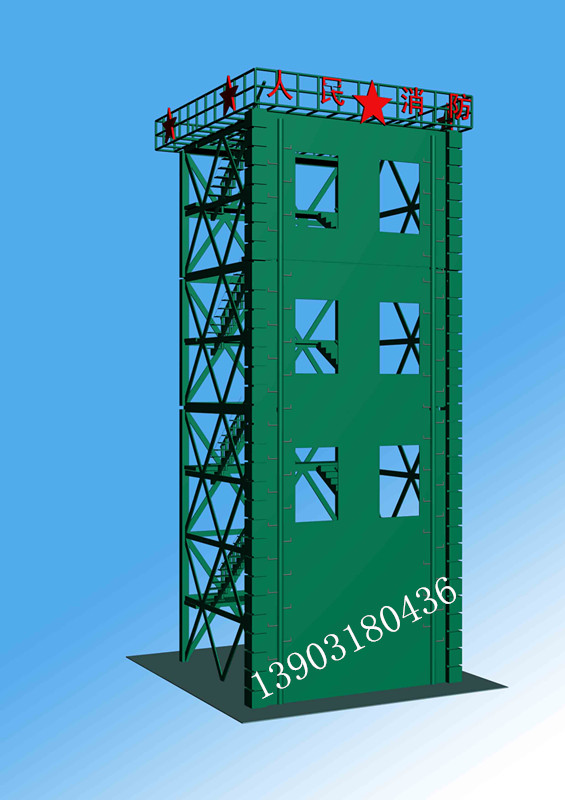 六、訓練塔宜設置室外消防梯。消防梯應通至塔頂,并宜離地面 3 米高處設起,寬度不宜小于50厘米。消防訓練塔產品說明:多功能消防訓練塔,主要由(1)模擬窗、(2)樓層隔板、(3)后骨架、(4)瞭望、指揮平臺骨架及主體鋼結構框架等組成。在塔體前端部位設有八個模擬窗(根據(jù)需要定做幾層幾窗口),在上、下相鄰的模擬窗之間設有樓層隔板(鋼板)。2、在塔體后部下方設有與模擬窗相對應的后骨架。3、模擬窗與樓層隔板以及后骨架及主體框架相互之間用螺栓連接為一體,4、層與層之間均有安全樓梯連接。5、塔體上部裝有了望、指揮平臺。6、根據(jù)需要可安裝測風儀、涼水帶架和警報器等。7、根據(jù)需要,在消防訓練塔旁邊可制作模擬消防訓練井。8、消防訓練塔設備同時還配備消防專用滑輪、滑竿、模擬墻等附屬設施。本訓練塔結構科學、操作安全、使用方便,產品防腐處理為熱鍍鋅或熱噴涂處理,30年無需維護,安全可靠。具有消防訓練、瞭望、測風、報警等多種功能。同時便于指揮長隨時掌握消防官兵的動作要領。是目前武警消防官兵消防訓練實戰(zhàn)演習之必備設備,同時替代了過去磚混結構消防樓的歷史。