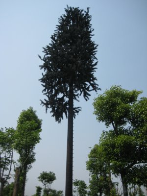 仿生塔保持了原有通信塔的所有優(yōu)點,在其外形上作了重大的突破、改進,以自然生長的松樹、樟樹、椰子樹等為仿真的造型樣本,設計素描圖和電腦效果圖,制訂雕塑和噴涂工藝程序,對通信塔仿真?zhèn)窝b,使人們察覺不到塔的存在,把它融入了周圍的自然環(huán)境中,讓通信鐵塔與周圍的自然環(huán)境相協調,有效地解決了對環(huán)境要求較高的旅游區(qū)、風景區(qū)等地建站難的問題。
